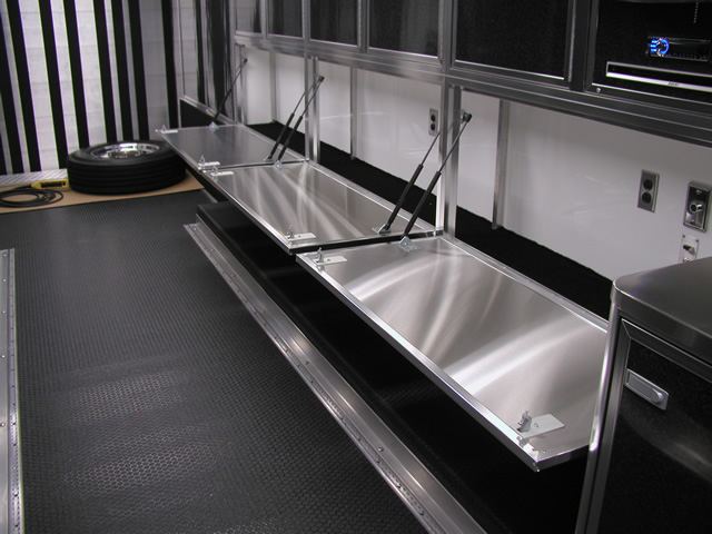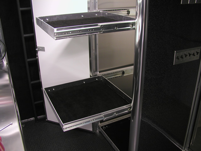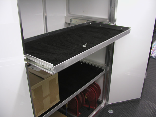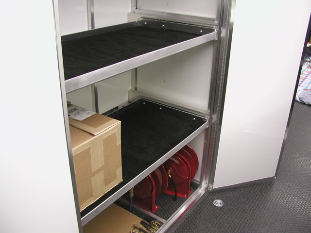 Note: Many of the storage cabinet options shown are also available on our smaller trailers. We welcome your personalized storage ideas and can custom build most anything you desire. |