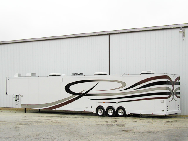 T&E recently built this 53' Gooseneck Trailer for Brent Kolada who travels around the U.S. and Canada with a mobile on-location surgical instrument repair service. Brent wanted his trailer to be a combination mobile business and RV due to the fact that he is on the road for long periods of time traveling to various medical facilities throughout the year. The trailer features separate work and office/living areas and allows Brent to be highly productive in his business travels. Brent put a lot of personal research and planning into exactly what he needed in a trailer and T&E worked closely with him and successfully brought those plans to fruition.
