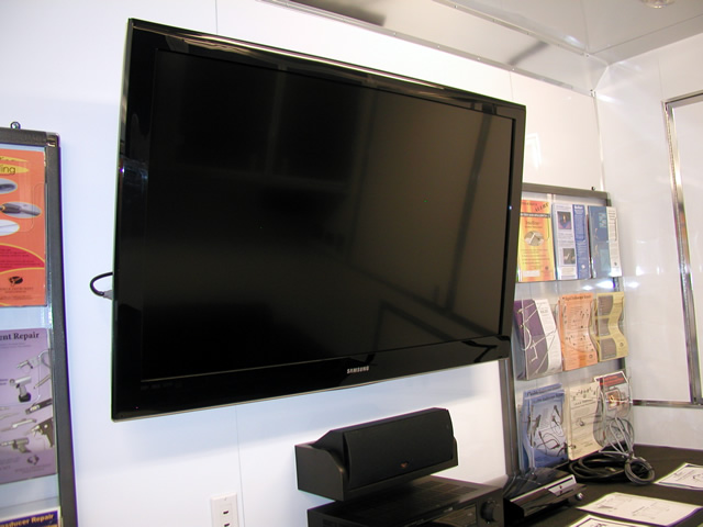 The front office/living area of the trailer features all the amenities needed to both conduct Brent's daily business activities and also to afford him a place to relax after working hours. In addition to the office desks and other related items, there is a large leather sofa with an HD LCD monitor directly across from it. Brent can relax and enjoy his favorite television programs via the on board satellite system, watch a favorite movie in full HD 1080 clarity via Blu-Ray or listen to his favorite music through the high powered stereo system. There is even a fully equipped bathroom w/shower and a special Incinolet toilet system which doesn't require water or a related sewage tank. To visualize what T&E is capable of, please take a moment to tour through Brent's trailer via the photo galleries below. [A PDF Photo Pack is also available for offline viewing.]