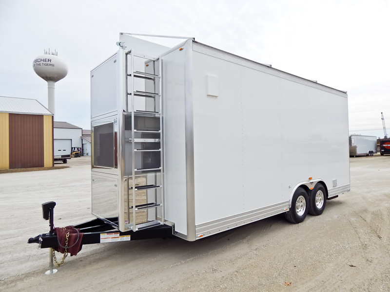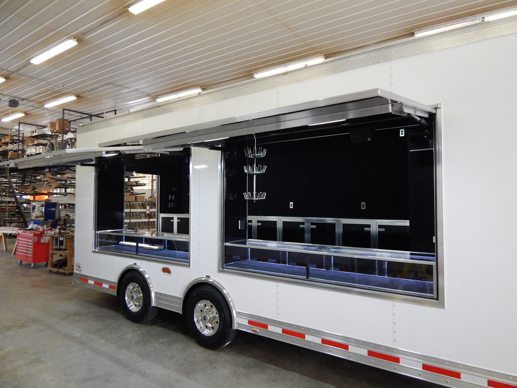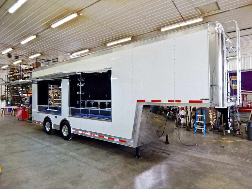 Enhance your event sales with a custom built T&E all aluminum vending trailer. These trailers are available in gooseneck or pull-a-long configurations and offer a wide range of options to match whatever your on-site sales goals may be. Built with the same high quality as the other trailers in our lineup, T&E vending trailers will stand up to years of hard work and provide you with higher resale value over lower quality trailers when it's time to sell.